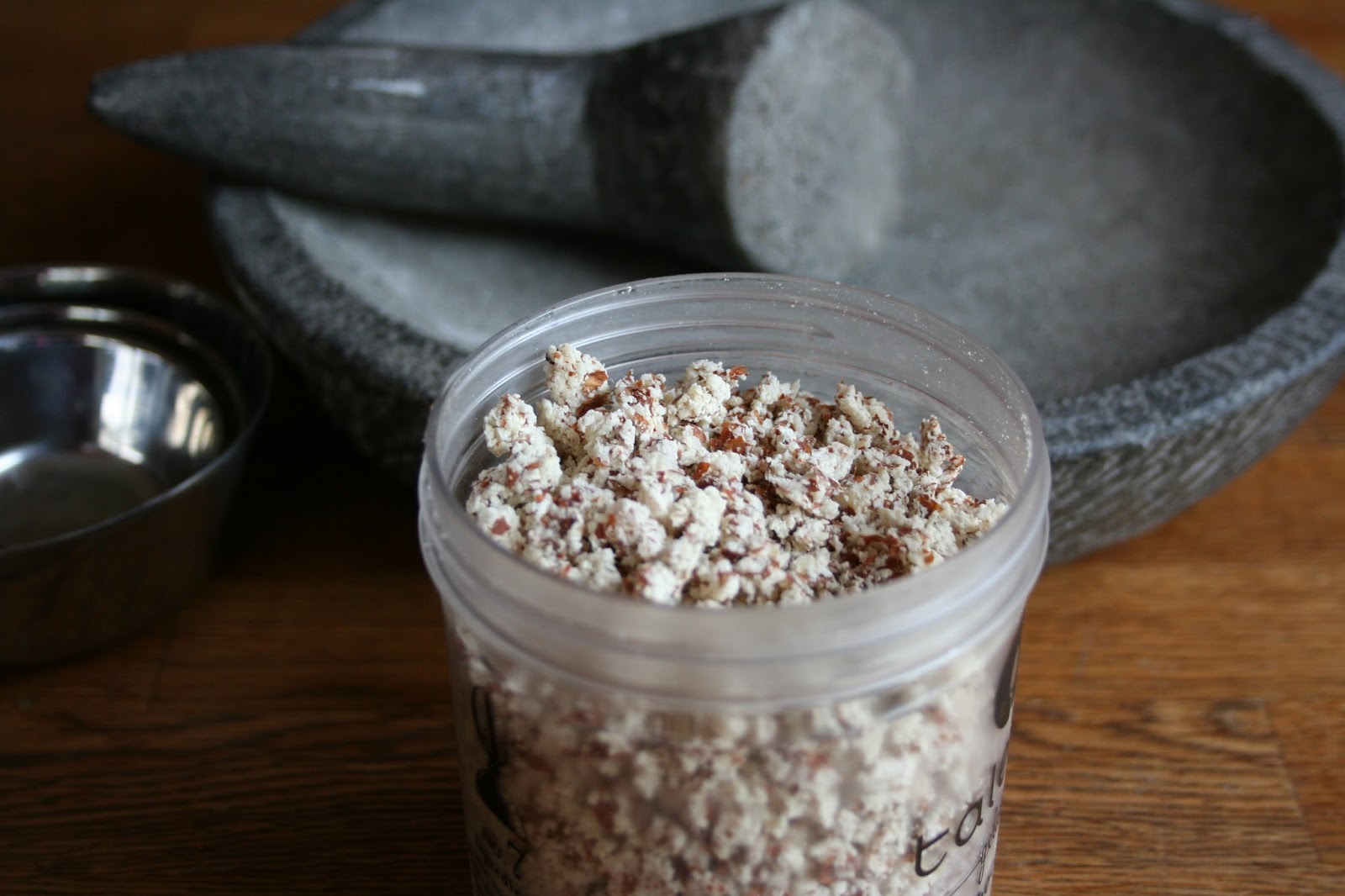 I love using the things we have, and this was a great excuse to use the mortar and pestle to make the almond meal fine.